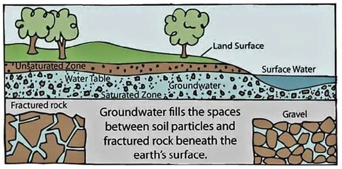 What is groundwater? It’s the water located below ground in spaces between sand, sediments and bedrock formations. NRI, p.35.